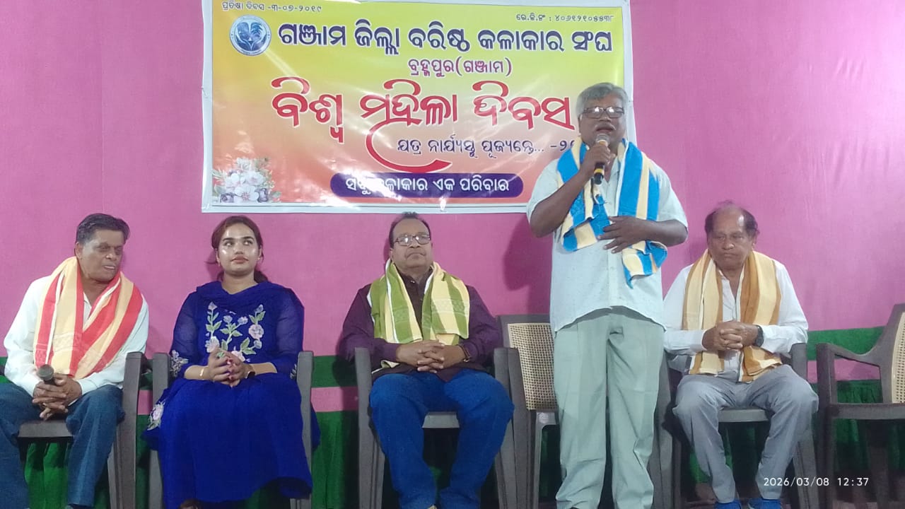 "ଗଞ୍ଜାମ ଜିଲ୍ଲା ବରିଷ୍ଠ କଳାକାର ସଂଘ" ତରଫରୁ ବିଶ୍ୱ ମହିଳା ଦିବସ ମହାସମାରୋହରେ ପାଳିତ